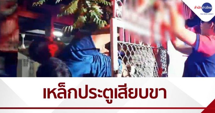 หนุ่มปีนประตูบ้านพลาด เหล็กเสียบขาทะลุ