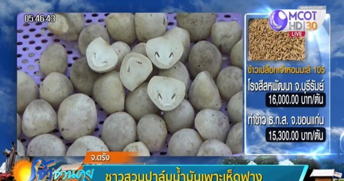 ชาวสวนปาล์มน้ำมัน ต.นาโต๊ะหมิง อ.เมือง จ.ตรัง เพาะเห็ดฟางในร่องสวนปาล์มน้ำมันเป็นอาชีพเสริมสร้างรายได้ หลังราคาปาล์มน้ำมันตกต่ำ