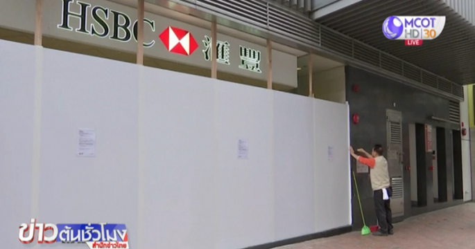 ธนาคารเอชเอสบีซี สั่งปิดสาขาบนเกาะฮ่องกงเป็นการชั่วคราว หลังได้รับความเสียหายจากเหตุประท้วงเรียกร้องประชาธิปไตย เมื่อวานนี้