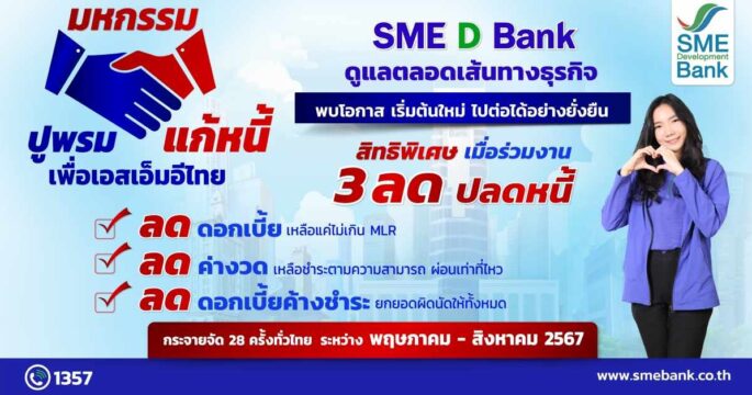 SME D Bank ยกทัพจัด “มหกรรมปูพรมแก้หนี้เพื่อเอสเอ็มอีไทย” มอบสิทธิพิเศษ “3 ลด ปลดหนี้” ช่วยผู้ประกอบการพลิกฟื้นธุรกิจ ประเดิม จ.เพชรบุรี 13-14 พ.ค.นี้