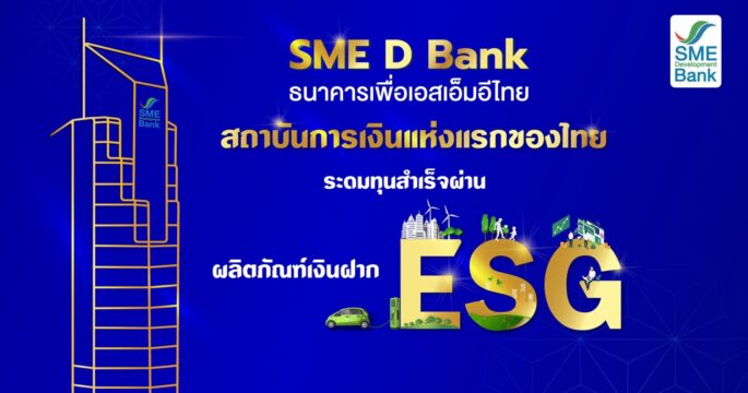 กรุงเทพฯ 22 ธ.ค.- SME D Bank ประกาศความสำเร็จ “สถาบันการเงินแห่งแรกของไทย” ออกผลิตภัณฑ์เงินฝากESG ระดมเงินทุน 1,000 ล้านบาท หนุนผู้ประกอบการเอสเอ็มอี ยกระดับธุรกิจคำนึงถึงสังคมและสิ่งแวดล้อม เติบโตสู่ความสำเร็จอย่างยั่งยืน