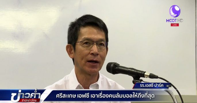 ธเนศ เครือรัตน์ ประธานสโมสร ศรีสะเกษ เอฟซี ขอโทษแฟนบอลชาวศรีสะเกษ ที่ผู้อำนวยการสโมสรมีส่วนเกี่ยวข้องกับขบวนการล็อกผลฟุตบอล ขณะที่ยังมีนักเตะศรีสะเกษอีก 4 คน ที่ยังเป็นผู้ต้องสงสัยในขบวนการนี้