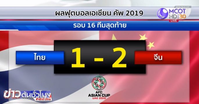 ไทย แพ้ จีน 1-2 ตกรอบ 16 ทีมสุดท้าย เอเชียนคัพ 2019