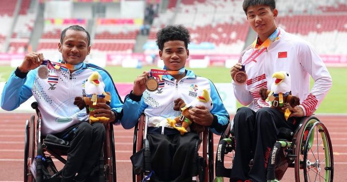 การแข่งขันกีฬาเอเชียนพาราเกมส์ 2018 ที่กรุงจาการ์ต้า ประเทศอินโดนีเซีย เมื่อวันที่ 13 ตุลาคม ช่วงเช้า กรีฑา “เจ้ากร” พงศกร แปยอ นักซี่งวีลแชร์ทีมชาติไทยที่ทำไปแล้วสามเหรียญทอง โชว์ฟอร์มสุดยอดคว้าเหรียญทองที่ 4 ให้กับตัวเอง จากวีลแชร์ 200 เมตร ชาย คลาส T53 ขณะที่การแข่งขันยิงปืน จ.อ.อนุสรณ์ ไชยชำนาญ นักแม่นปืนพาราไทย โชว์ฟอร์มเยี่ยม คว้าเหรียญทอง ใน ปืนยาวอัดลม ท่านอน 10 เมตร ไม่แบ่งเพศ คลาส SH2 โดยทำคะแนนได้ 636.5 คะแนน จากนั้นในช่วงค่ำ ทัพนักกีฬาไทย ยังคงทำผผลงานได้ดีอย่างต่อเนื่องคว้าเหรียญรางวัลเพิ่มได้อีก 1เหรียญทองจาก ประวัติ วะโฮรัมย์ ยอดนักวีลแชร์ทีมชาติไทย โชว์ฟอร์มสุดยอดซิ่งวีลแชร์คู่ใจเข้าเส้นชัยเป็นอันดับ 1 ด้วยเวลา 11.13.06 นาที คว้าเหรียญทอง วีลแชร์ 5,000 เมตร. […]