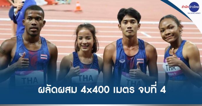 ทีมวิ่งผลัดผสม 4×400 เมตร ไทย เข้าเส้นชัยเป็นอันดับ 4 ด้วยเวลา 3 นาที 26.81 วินาที พลาดเหรียญทองแดงอย่างน่าเสียดาย