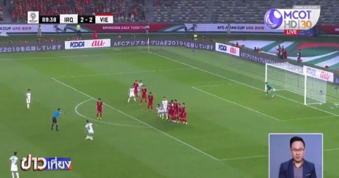 อาลี อัดนาน ยิงฟรีคิกให้อิรัก กลับมาเฉือนชนะเวียดนาม ในฟุตบอลเอเชียน คัพ 2019 กลุ่มดี เมื่อคืนที่ผ่านมา