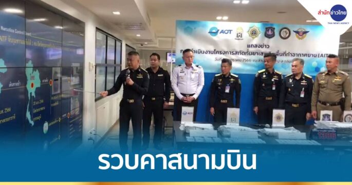 เลขาฯ ป.ป.ส.แถลงผลงานหน่วย AITF จับกุมต่างชาติซุกวัตถุออกฤทธิ์ต่อจิตประสาทเต็มกระเป๋า 79,200 เม็ด เดินทางจากเอเชียใต้ เข้าไทย ที่สนามบินสุวรรณภูมิ