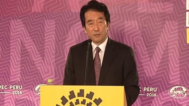นายกรัฐมนตรีชินโซ อาเบะ ของญี่ปุ่นเจรจาฟื้นฟูความสัมพันธ์ระหว่างประเทศกับประธานาธิบดีสี จิ้นผิง ของจีนระหว่างเข้าร่วมการประชุมเอเปก