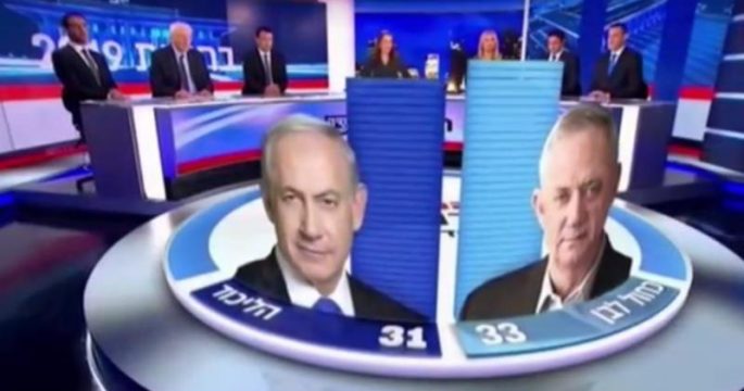 ผลสำรวจจากการนับคะแนนหน้าคูหาหลังการหย่อนบัตรหรือเอ็กซิทโพลล์ ในการเลือกตั้งของอิสราเอลเมื่อวานนี้ชี้ว่า ทั้งพรรคลิคุดและพรรคบลูแอนด์ไวท์ต่างมีคะแนนสูสี