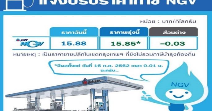 ปตท.ปรับราคาฯ NGV ลดลง 24 สต./กก. มีผล เวลา 00.01 น. วันที่ 16 ก.ย.
