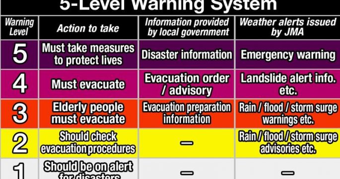 สำนักอุตุนิยมวิทยาญี่ปุ่นประกาศเตือนภัยฉุกเฉินฝนตกหนัก เป็นการเตือนภัยระดับสูงสุดจากทั้งหมด 5 ระดับ สำหรับพื้นที่ส่วนใหญ่ทางตอนกลางและตะวันออกของประเทศ