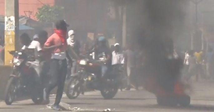 กลุ่มผู้ประท้วงปะทะกับตำรวจในกรุงปอร์โตแปรงซ์ของเฮติในวันพุธ ระหว่างเดินขบวนประท้วงประธานาธิบดีโจฟเนล โมอิส