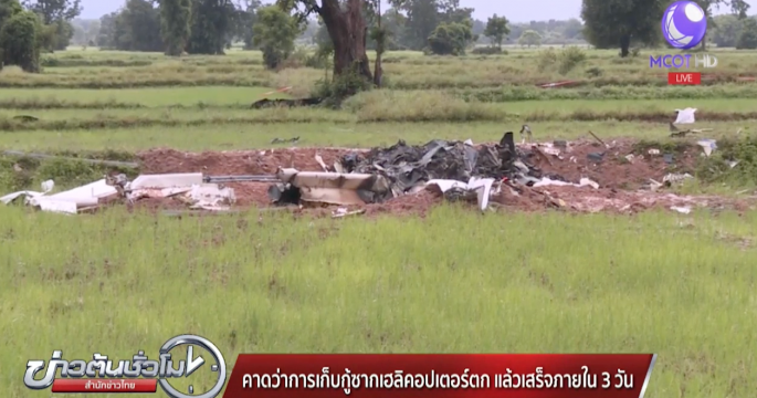 เจ้าหน้าที่เตรียมกู้ซากเฮลิคอปเตอร์เสียหลักตกทุ่งนาที่ จ.ขอนแก่น เสียชีวิต 4 ศพ หลังคณะกรรมการสอบสวนอุบัติเหตุของอากาศยานในราชอาณาจักร เก็บหลักฐานครบถ้วน