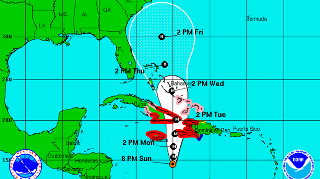 เฮอริเคนแมทธิวที่กำลังเคลื่อนตัวอยู่ห่างจากจาเมกากว่า 400 กิโลเมตรทำให้เกิดลมแรงทั่วจาเมกาและเฮติในทะเลแคริบเบียน อาจเกิดฝนตกหนักจนเกิดน้ำท่วมและดินถล่ม