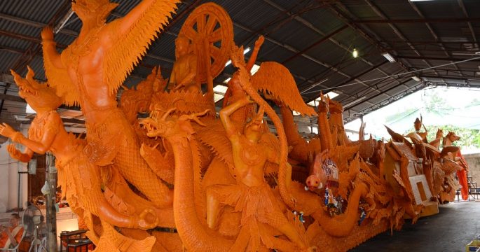 นครราชสีมา 20 ก.ค.- คุ้มวัดในโคราชเร่งประดิษฐ์ขบวนเทียนพรรษาส่งประกวดในงานประเพณีแห่เทียน 27-28 ก.ค.นี้ ขณะที่วัดโพธิ์-วัดเดิม มีธีม “ถ้ำหลวง” ร่วมยกย่องความดีของเจ้าหน้าที่หลายหน่วยงาน และไว้อาลัยวีรบุรุษ “จ่าแซม” ช่วยทีมบอลหมูป่าอะคาเดมี บรรยากาศใกล้วันเข้าพรรษาตามคุ้มวัดในจังหวัดนครราชสีมาต่างเร่งมือตกแต่งขบวนต้นเทียนพรรษา เพื่อให้ทันส่งเข้าประกวดในงานประเพณีแห่เทียนพรรษาจังหวัดนครราชสีมา วันที่ 27-28 ก.ค.นี้ ซึ่งปีนี้มีการส่งขบวนเทียนพรรษาเข้าประกวดกว่า 40 ขบวนเทียน สำหรับวัดโพธิ์ อำเภอเมือง ประดิษฐ์ขบวนเทียนพรรษามีความยาว 18 เมตร ความสูง 4.50 เมตร ใช้เทียนน้ำหนักมากถึง 10 ตัน ชื่อ “ขบวนเทียนเทียนธรรม” เป็นเรื่องราวพุทธประวัติทางพุทธศาสนา หน้าขบวนแกะสลักเป็นรูปพญาครุฑ ตรงกลางเป็นรูปสัตว์ป่าหิมพานต์ นอกจากนี้ ยังมีการแกะสลักเป็นรูปทีมฟุตบอลหมูป่าอะคาเดมี่อยู่ในขบวนด้วย จากฝีมือของนายเทียน เลิศศรีศิลป์ หัวหน้าช่างแกะสลัก และนางมารศรี มิ่งศิริรัตน์ อดีตรองผู้อำนวยการโรงเรียนสุรนารี นายเทียน กล่าวว่า ขณะนี้ขบวนเทียนพรรษาวัดโพธิ์คืบหน้าไปแล้ว 80% ยังคงต้องเร่งมือทำงานกันทั้งกลางวันและกลางคืน เพื่อให้เสร็จทันประกวด ขณะเดียวกันมีนักท่องเที่ยวหลั่งไหลเข้ามาชมการแกะเทียนพรรษาอย่างต่อเนื่อง สำหรับการแกะรูปทีมหมูป่าอะคาเดมี่นั้น เพื่อเป็นการให้กำลังใจและชื่นชมหน่วยซีล รวมถึงเจ้าหน้าที่ทุกหน่วยงานที่ไปช่วยภารกิจในครั้งนั้นจนสำเร็จ […]