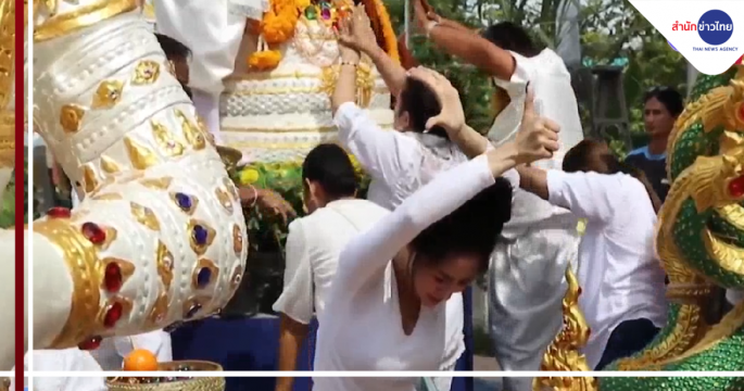 ชาวบ้านหนองปลาดุก จ.ราชบุรี พากันแก้บนบวงสรวงปู่โกสุนโทนาคราช หลังจากงวดที่แล้วถูกหวยกันทั้งตำบลรวมกว่า 10 ล้านบาท