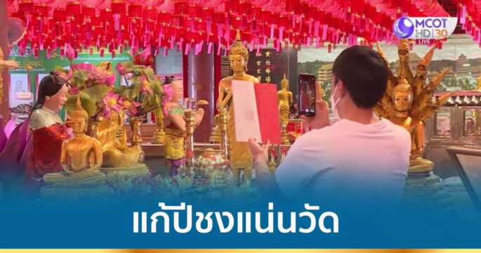 แห่แก้ปีชงเทศกาลตรุษจีน วัดเล่งเน่ยยี่ 2 นนทบุรี ไม่เพียงเดินทางไปที่วัด แต่ยังมีรับแก้ชงออนไลน์ด้วย