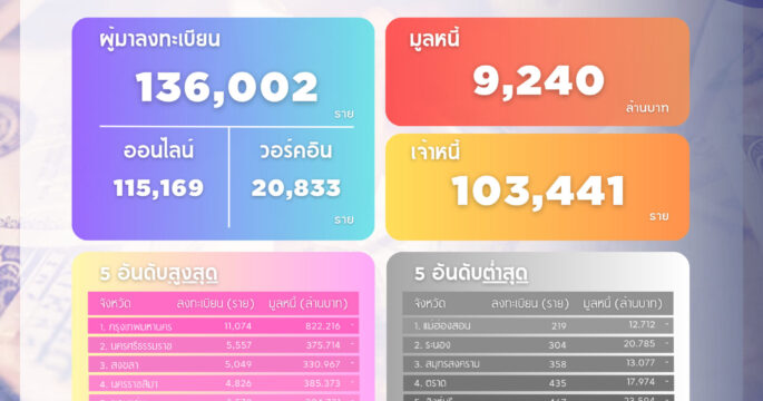 ครบ 73 วัน ประชาชนลงทะเบียนหนี้นอกระบบแล้วกว่า 1.4 แสนราย