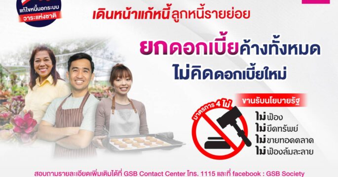 จัดมาตรการ “4 ไม่” ไม่ฟ้อง ไม่ยึด ไม่ขายทอด ไม่ฟ้องล้มละลาย ขานรับนโยบายรัฐแก้ปัญหาหนี้