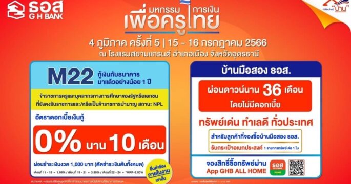 ธอส. ช่วยเหลือครูและบุคลากรทางการศึกษา แก้หนี้ดอกเบี้ยร้อยละ 0 นาน 10 เดือน ร่วมงานมหกรรมการเงินเพื่อครูไทย 4 ภูมิภาค