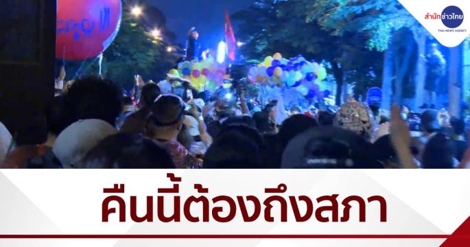 เวลา 19.30 น. สถานการณ์ชุมนุมตึงเครียด สลับผ่อนคลายเป็นระยะ ผู้ชุมนุมผ่าน 2 ด่านเข้าประชิดด่านที่ 3 ก่อนถึงหน้ารัฐสภาแล้ว ยืนยันคืนนี้จะเข้าให้ถึงรัฐสภา ส่วนมวลชนทยอยเข้ามาเติมในพื้นที่เรื่อยๆ