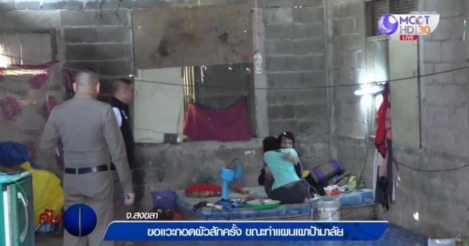 คุมตัว 1 ใน 5 ผู้ต้องหาแก๊งค้ายาเสพติดที่ก่อเหตุทำร้ายร่างกายและจุดไฟเผา “ป้ามาลัย” ไปชี้จุดเกิดเหตุและทำแผนฯ โดยผู้ต้องหาเศร้าหนักถึงขั้นขอกอดสามีที่ป่วยเป็นโปลิโอเป็นครั้งสุดท้าย