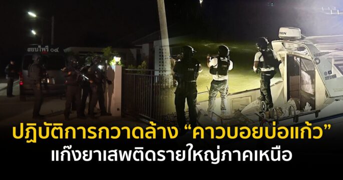 เจ้าหน้าที่เปิดปฏิบัติการกวาดล้างเครือข่าย “คาวบอยบ่อแก้ว” แก๊งขนยาเสพติดรายใหญ่ของภาคเหนือ พร้อมยึดทรัพย์สินกว่า 100 ล้านบาท หลังพบช่วง 2 ปีนี้ ขนไอซ์จากชายแดนลงไปภาคกลางไม่ต่ำกว่า 20 ครั้ง เฉพาะที่ถูกจับได้ 3 ครั้ง ยึดไอซ์ได้กว่า 3,000 กิโลกรัม