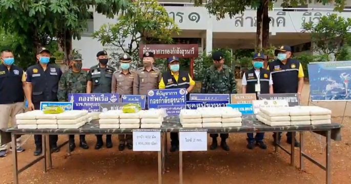 ชุดสนธิกำลังอุบลฯ ยึดยาเสพติดล็อตใหญ่ หลังปะทะสนั่นริมโขงชายแดนเขมราฐ แก๊งยาเสพติดเผ่นหนีเจ็บ 1 ทิ้งกระสอบยาบ้ากว่า 800,000 เม็ด ไอซ์ 2 กก.