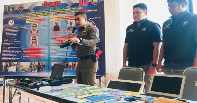 ตม.จับแก๊งสกิมเมอร์และปลอมบัตรอิเล็กทรอนิดส์ โดยมี 2 สาวไทยรับจ้างหาบัตรเอทีเอ็มรูดเงินส่งต่อให้ชาวจีน มูลค่าความเสียหาย 23 ล้านบาท