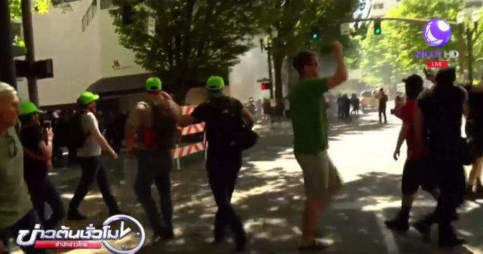 ตำรวจสหรัฐต้องยิงแก๊สน้ำตาสลายการชุมนุมประท้วงของกลุ่มขวาจัดต่อต้านเผด็จการในเมืองพอร์ทแลนด์ รัฐโอเรกอน หลังผู้ประท้วงขัดคำสั่งของเจ้าหน้าที่และไม่ยอมสลายการชุมนุม