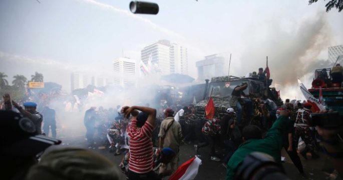ตำรวจยิงแก๊สน้ำตา-ฉีดน้ำสลายผู้ประท้วงผลเลือกตั้งอินโดนีเซีย