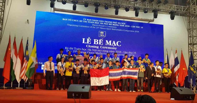 นักเรียนไทยคว้า12 รางวัล 17 เหรียญ (1 เหรียญทอง 5 เหรียญเงิน 6 เหรียญทองแดง) ในการแข่งขันคณิตศาสตร์โอลิมปิก ระดับมัธยมศึกษา ณ เวียดนาม
