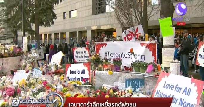 ผู้ชุมนุมหลายพันคนร่วมจุดเทียนไว้อาลัยให้แก่ผู้เสียชีวิต 10 คนจากเหตุคนร้ายขับรถตู้พุ่งชนฝูงชนใจกลางนครโทรอนโตของแคนาดาเมื่อวันจันทร์ที่แล้ว