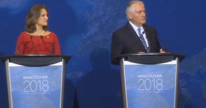 สหรัฐและแคนาดาออกแถลงการณ์ร่วมกันว่า 20 ประเทศที่เข้าร่วมการประชุมว่าด้วยเกาหลีเหนือตกลงเห็นพ้องกันในวันอังคาร เพื่อพิจารณาคว่ำบาตรแต่เพียงฝ่ายเดียว