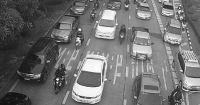 การจราจรเช้าวันพุธ ถนนกรุงธนบุรี ขาเข้า มุ่งหน้าขึ้นสะพานสมเด็จพระเจ้าตากสิน รถมาก เคลื่อนตัวได้ช้า