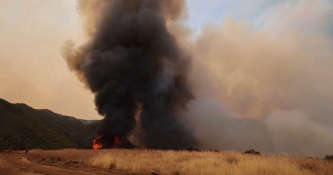 แคลิฟอร์เนีย 23 ม.ค. – ท้องฟ้าเหนือทางหลวงสายหนึ่งในรัฐแคลิฟอร์เนียของสหรัฐกลายเป็นสีส้ม ทัศนวิสัยเลวร้าย จากควันไฟป่าที่ลุกไหม้ล่าสุดเมื่อวันพุธ คลิปที่ผู้ขับขี่รายหนึ่งบันทึกไว้ขณะขับรถบนทางหลวง เห็นป้ายบอกทางไปลอสแอนเจลิสและถนนอ็อกนาร์ด ทางหลวงและดวงอาทิตย์ถูกปกคลุมไปด้วยฝุ่นควัน ขณะที่ท้องฟ้าเป็นสีส้มไปตลอดเส้นทาง อันเป็นผลจากไฟป่าฮิวจ์ไฟร์ (Huges Fire) ที่กำลังโหมไหม้อยู่ทางตอนเหนือห่างจากตัวเมืองราว 80 กิโลเมตร เพลิงได้ลุกไหม้อย่างรวดเร็วเนื่องจากอากาศอากาศที่แห้งแล้งและกระแสลมแรง เผาพื้นที่ไปแล้วราว 38 ตารางกิโลเมตร ทางการต้องสั่งอพยพประชาชนกว่า 31,000 คน   แม้เข้าสู่เวลากลางคืนแล้ว ทางการยังคงระดมเจ้าหน้าที่ดับเพลิงไฟป่าหลายพันคนไปควบคุมเพลิง ซึ่งยังลุกลามอย่างรวดเร็วในสภาพการทำงานที่ยากลำบาก พร้อมกันนั้นยังต้องบังคับใช้คำสั่งให้ประชาชนอพยพจากอันตรายร้ายแรง เจ้าหน้าที่หวังว่า กระแสลมจะเบาบางลงและความชื้นเพิ่มขึ้นบ้าง.-812(814).-สำนักข่าวไทย