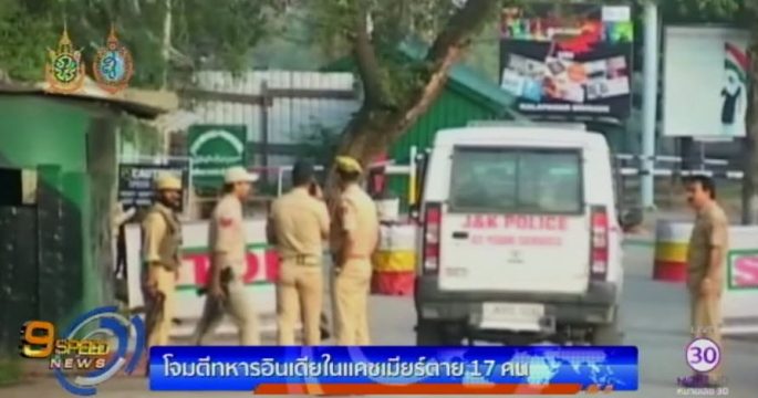 กลุ่มนักรบมุสลิมในแคชเมียร์บุกโจมตีกองบัญชาการทหารอินเดีย ใกล้พรมแดนปากีสถาน มีทหารอินเดียเสียชีวิตอย่างน้อย 17 คน