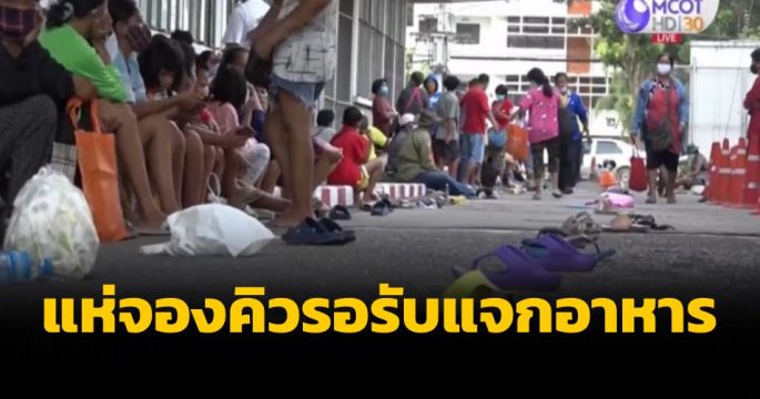ชาวโครราชแห่วางสิ่งของจองคิวตั้งแต่เช้ามืด หลังตำรวจประกาศแจกข้าวสาร อาหารแห้ง และข้าวกล่อง 500 ชุด ในเวลา 11.00 น. ให้ผู้ได้รับผลกระทบจากโควิด-19