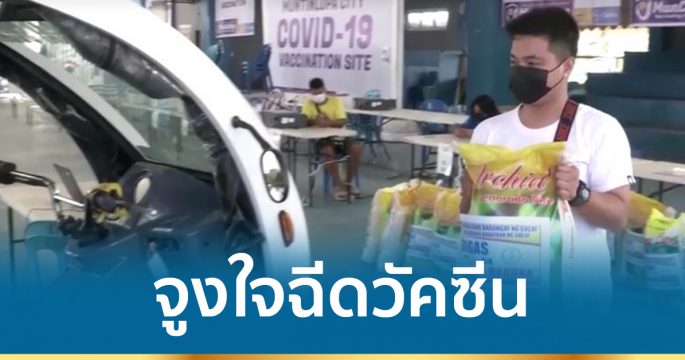 ชุมชนแห่งหนึ่งในฟิลิปปินส์สร้างแรงจูงใจให้ชาวบ้านเข้ารับการฉีดวัคซีนป้องกันโรคโควิด-19 ด้วยการจับฉลากแจกข้าวสารกระสอบใหญ่ให้แก่ผู้ที่ฉีดวัคซีน หลังพบว่าเป็นเรื่องยากที่จะโน้มน้าวใจให้พวกเขามาฉีดวัคซีน