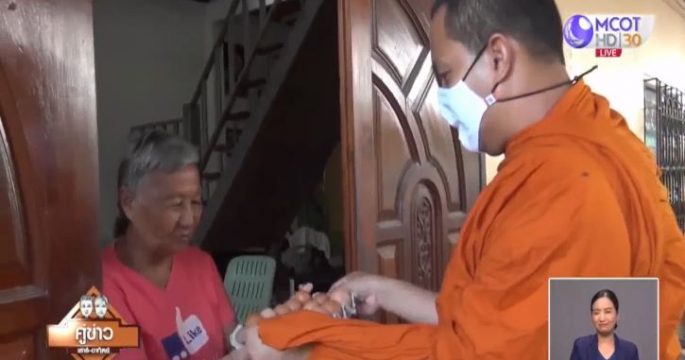 เจ้าอาวาสวัดไทรงาม จ.สงขลา นำไข่ไก่ 3,000 ฟอง ไปแจกชาวบ้านที่กินอยู่ลำบาก ตกงานขาดรายได้และต้องอยู่รวมกันที่บ้านหลายคน หากไม่มีข้าวสารก็ให้ไปเอาที่วัดได้ทุกวัน