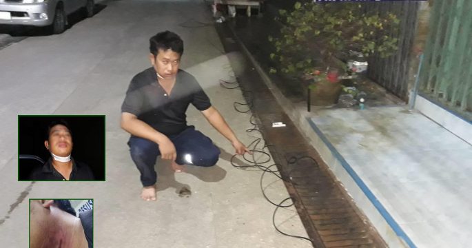 ชายวัย 37 ปี แจ้งความเรียกร้องให้บริษัทรับผิดชอบ หลังถูกสายโทรศัพท์หย่อนลงมาเกี่ยวคอเป็นแผลลึกขณะขับ จยย.มาซื้ออาหารย่านตลาดหนองบัว