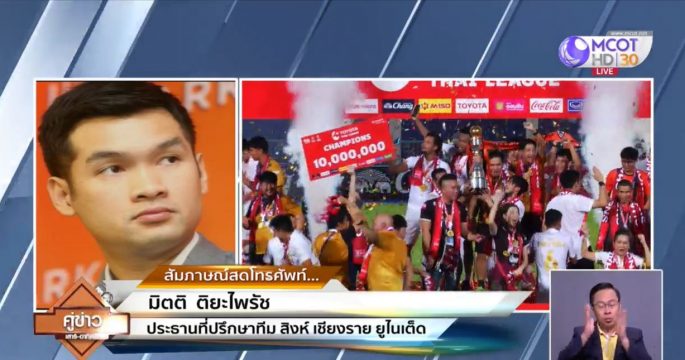 ประธานที่ปรึกษาทีมสิงห์ เชียงราย ยูไนเต็ด ขอบคุณนักฟุตบอล ทีมงานที่ช่วยกันทำงานอย่างหนัก รวมถึงแฟนบอลที่ไม่ทิ้งกัน แม้จะตกรอบฟุตบอลถ้วยก่อนคนอื่น แต่ยังคอยให้กำลังใจมาตลอด จนคว้าแชมป์ไทยลีกได้