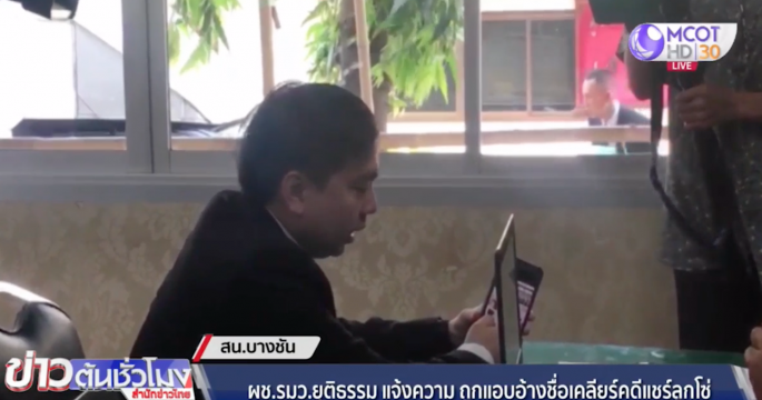 ผช.รมว.ยุติธรรม เข้าแจ้งความ ถูกนำรูปภาพตัวเองไปแอบอ้างเรียกรับเงินกับผู้เสียหายโดยหลอกลวงว่าสามารถช่วยวิ่งเต้นคดีความคดีแชร์ลูกโซ่