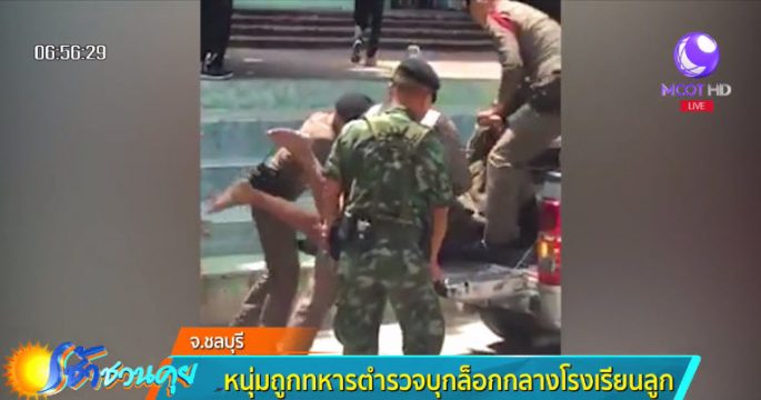 แชร์สนั่น! คลิปหนุ่มถูกทหารตำรวจบุกล็อกกลางโรงเรียนลูก เจ้าหน้าที่เผยเป็นการเข้าใจผิด หลังอดีตภรรยาแจ้งจับเกี่ยวข้องอาวุธปืนและยาเสพติด