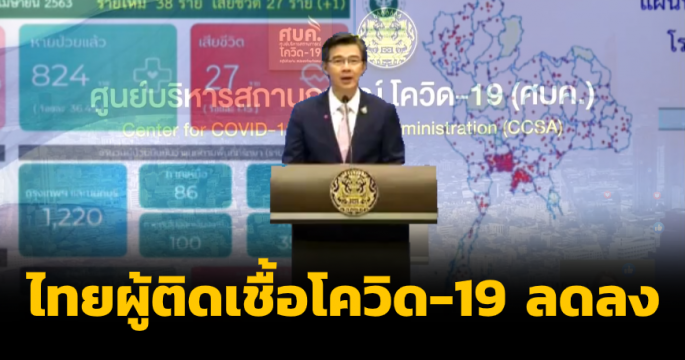 สถานการณ์โรคโควิด-19 ในไทย พบผู้ติดเชื้อรายใหม่ 27 ราย สะสม 2,792 ราย หายป่วยแล้ว 1,999 ราย ตัวเลขผู้ติดเชื้อรายใหม่ลดลงต่อเนื่อง และไม่พบผู้เสียชีวิต