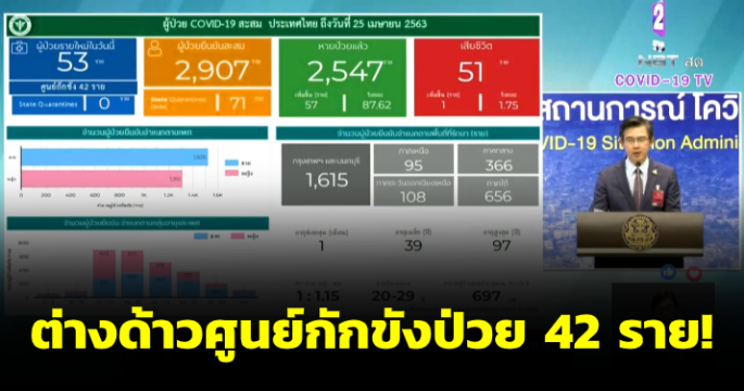 แถลงการณ์ศูนย์บริหารสถานการณ์โควิด-19 (ศบค.) วันที่ 4 เม.ย. 63 ไทยหายแล้ว 612 ราย ตายเพิ่มอีก 1 มี 13 จังหวัดยังไม่พบเชื้อ