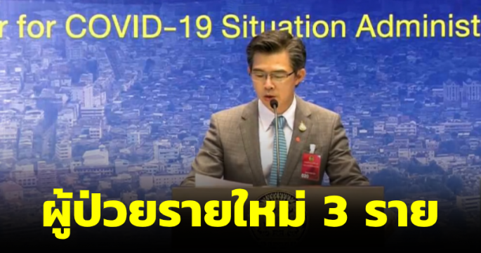 สถานการณ์โควิด-19 ในไทย พบผู้ป่วยรายใหม่ 3 ราย จากการค้นหาเชิงรุกและ State Quarantine หายป่วยแล้ว 2,772 ราย รักษาในโรงพยาบาล 165 ราย และไม่มีผู้เสียชีวิตเพิ่ม