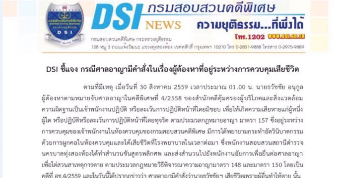 อธิบดีดีเอสไอ พร้อมร่วมมือตำรวจหาข้อเท็จจริง อดีตเจ้าหน้าที่ที่ดินพังงาผูกคอตายในห้องขังหลังศาลอาญามีคำสั่งถูกทำให้ตาย