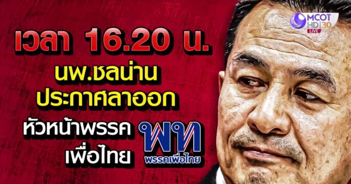 “หมอชลน่าน” แถลงลาออก หน.พรรคเพื่อไทย ตามสัญญาจับมือพรรคลุง