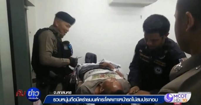 รวบหนุ่มถือมีดร่ายมนต์กระโดดเกาะหน้ารถ พบสติไม่สมประกอบ